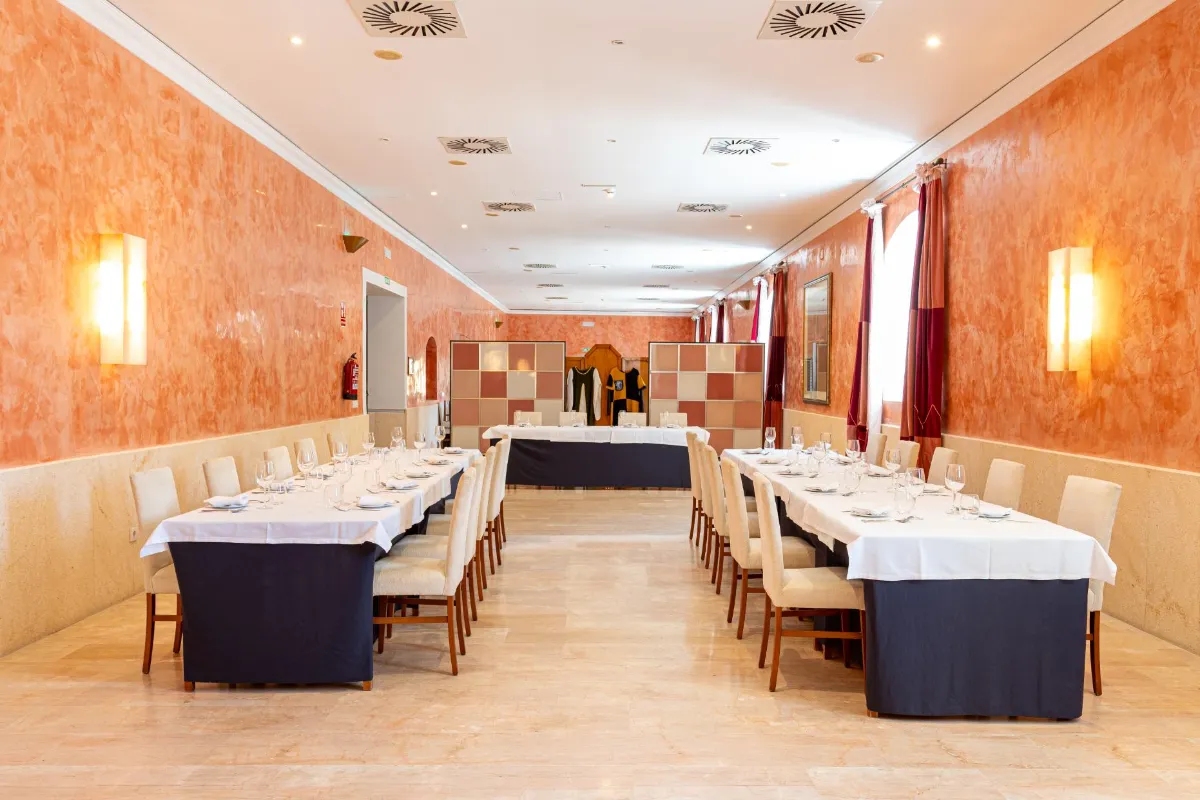 Die Herberge des Klosters Monasterio de Rueda ist ein 4-Sterne-Hotel, das sich im gleichnamigen Kloster befindet. Wir befinden uns 3,5 km vom Dorf Sástago und 1 km vom Dorf Escatrón entfernt. Wir sind Ihre beste Wahl, wenn Sie die Rennstrecke Motorland Aragón (50 km entfernt) oder die Stadt Zaragoza (nur 60 km entfernt) besuchen möchten. Tauchen Sie ein in eine Umgebung voller Geschichte und Harmonie: Wenn Sie hier übernachten, schlafen Sie umgeben von den jahrhundertealten Mauern eines Zisterzienserklosters aus dem 13. Jahrhundert, das noch immer die Spiritualität vergangener Zeiten bewahrt. Umgeben vom Ufer des Flusses Ebro bietet unsere Herberge Ruhe und natürliche Schönheit in jeder Ecke. Unsere 35 Zimmer, verteilt auf den Abteipalast und die Galerie, verbinden meisterhaft mittelalterliche Ästhetik mit modernem Komfort wie Klimaanlagen, Minibars, komplette Badezimmer und WLAN-Verbindung. Die Lage ist ideal für kulturelle Ausflüge, Firmenveranstaltungen oder einfach, um dem Trubel zu entfliehen und sich von der Ruhe einhüllen zu lassen. Willkommen zu einem Aufenthalt, bei dem Geschichte und Komfort miteinander verschmelzen, um Ihnen ein unvergessliches Erlebnis zu bieten.