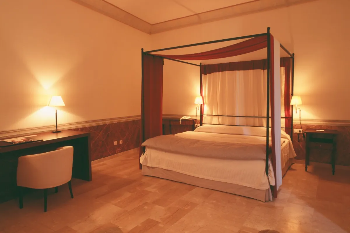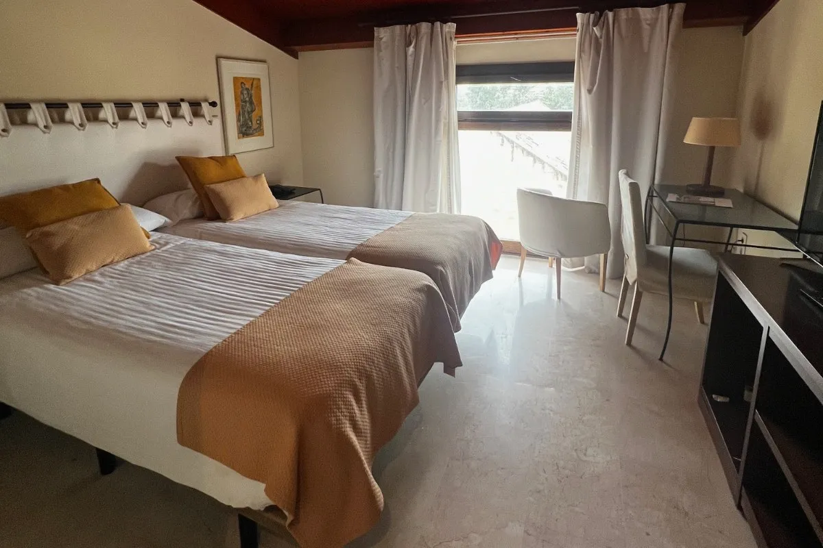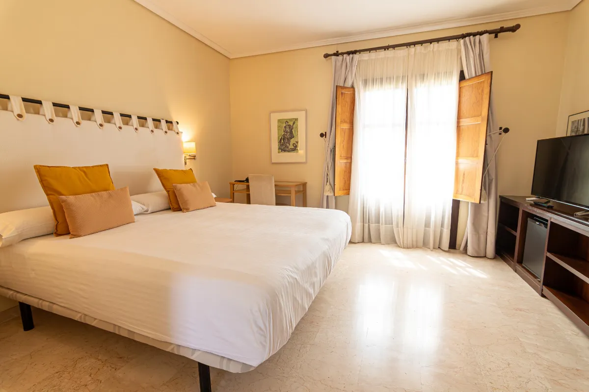 Die verfügbaren Bilder zeigen reizvolle Ecken des Klosters: Blick auf den Kreuzgang, die Barockfassade, die Gärten und den Ebro von der Terrasse aus. Es gibt auch Bilder aus dem Restaurant, dem Speisesaal und den sehr hellen Zimmern, die harmonisch und funktional eingerichtet sind. Jedes Foto vermittelt Ruhe, Weite und Sauberkeit. Wir laden Sie ein, sich unsere Bilder anzusehen, um einen Eindruck von der Ruhe und Authentizität zu bekommen, die Sie bei einem Aufenthalt in einem restaurierten Kloster erwarten, in dem jeder Winkel eine Geschichte erzählt. Sie werden sie gleich in der Herberge des Klosters Monasterio de Rueda hören, lesen und spüren können.